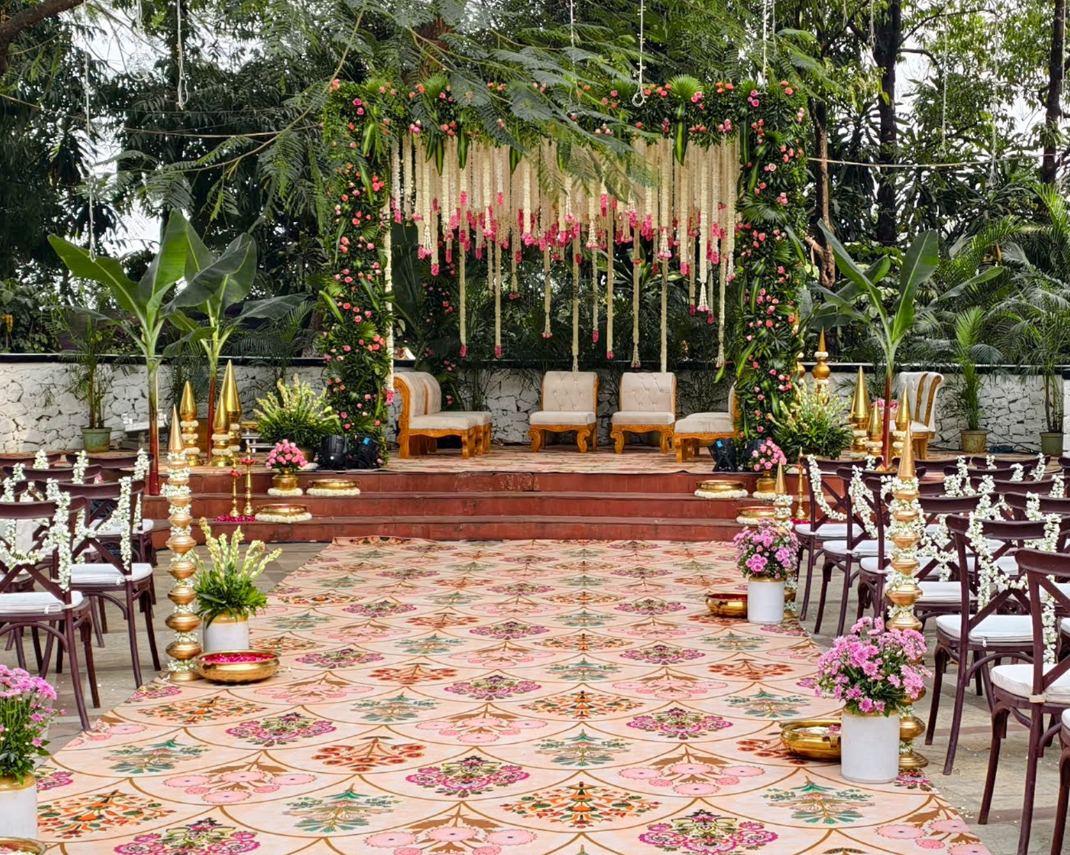 A contemporary Indian celebration, thoughtfully curated to reflect Anokhi’s vision. Set against a venue rich in natural greens, the design focused on enhancing its inherent beauty of the venue.