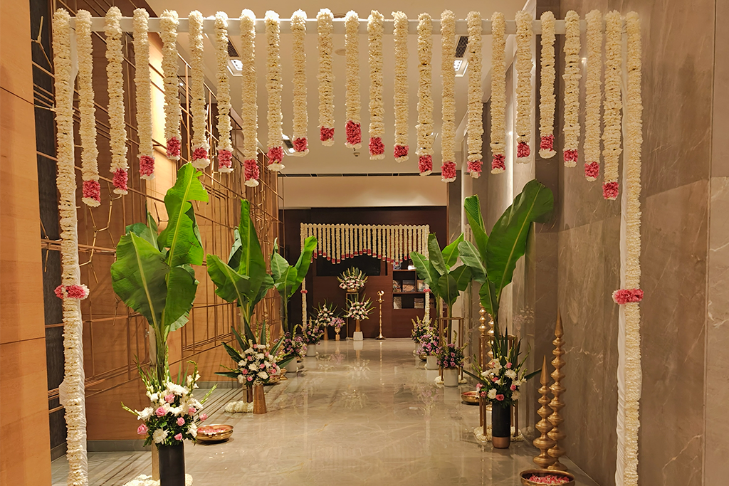 Hosted as a serene morning ceremony in the indoor ballroom at the Hyatt Regency Pune, the décor was envisioned to feel fresh, graceful, and filled with a sense of lightness. Pallavi, deeply rooted in her culture, sought a setting that reflected her heritage with elegance and authenticity.
